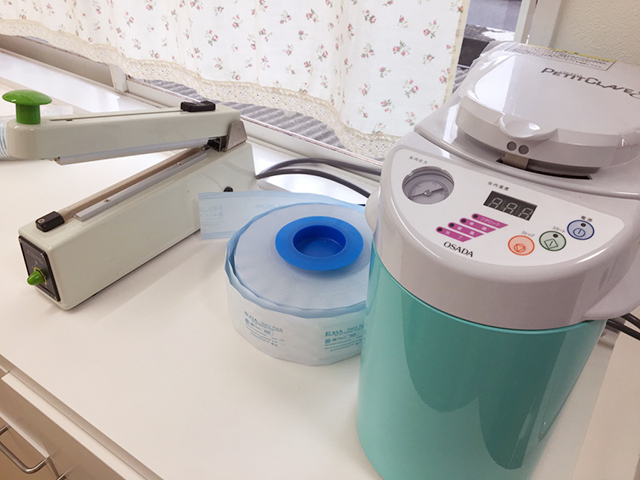 歯を削る際に使用する機会を専用の滅菌器を用いて徹底的に滅菌を行っております。一本一本個別に滅菌を行っておりますので、ご安心ください。